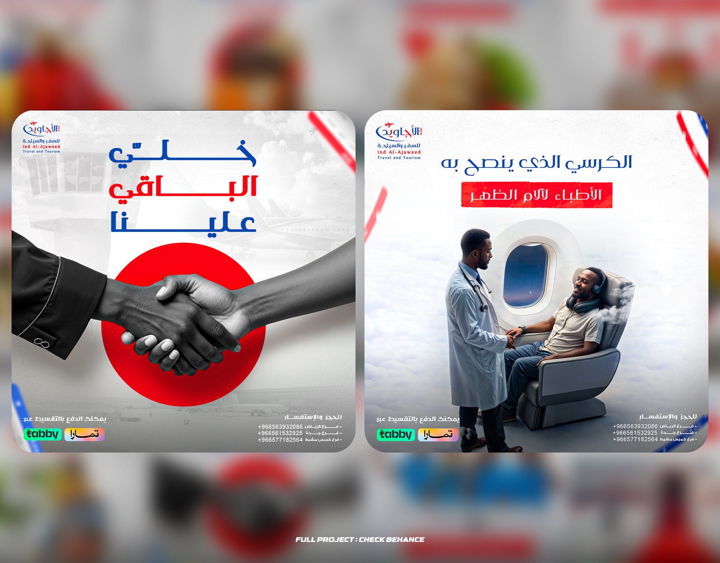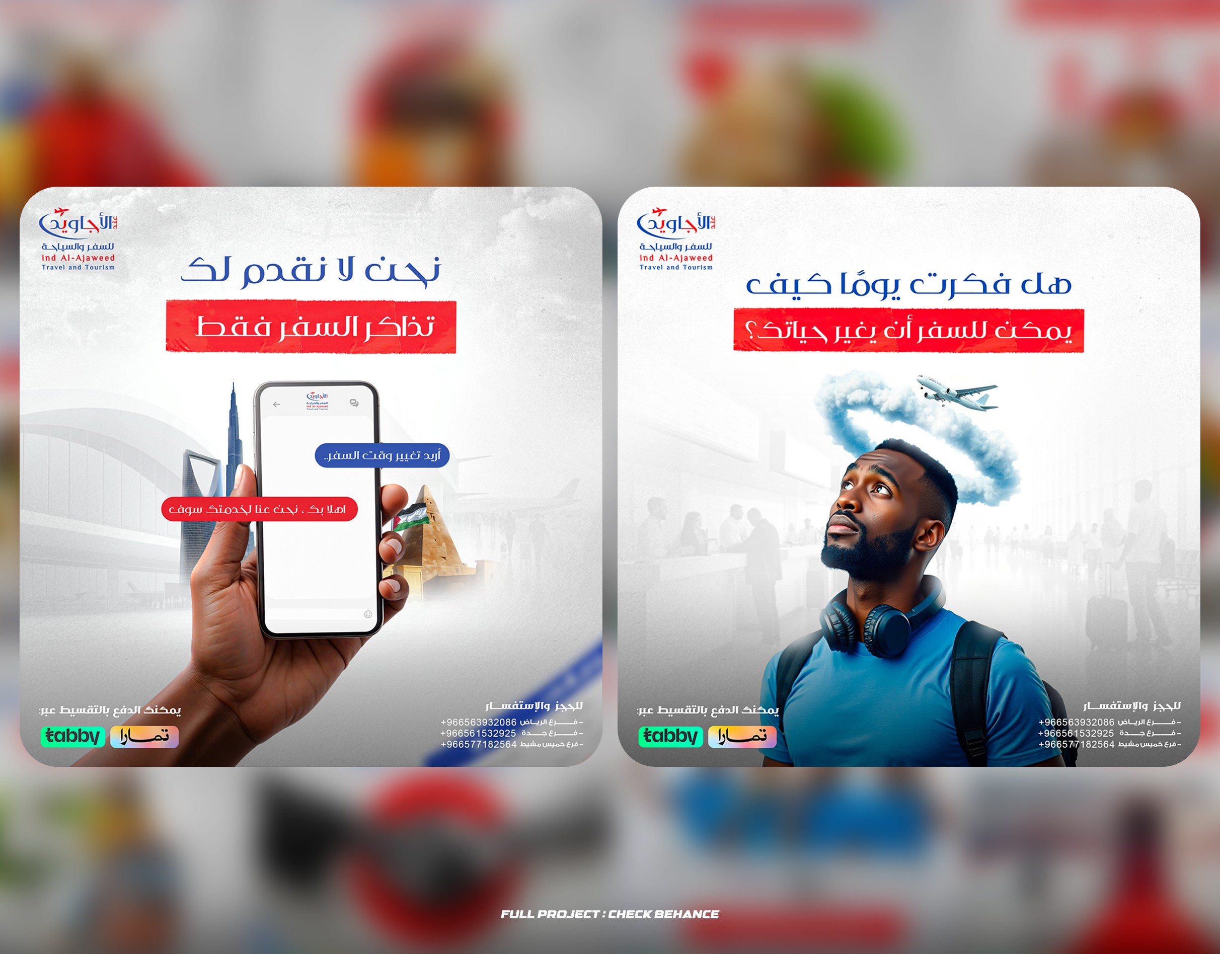 This project involved creating social media posts and campaigns for Indalajaweed Airlines, a Sudanese airline with agents across multiple Arab countries. The designs included interactive, inspirational, and promotional content aimed at enhancing the airline's digital presence and building customer trust. The goal was to create professional designs that align with the brand's identity and resonate with their audience.